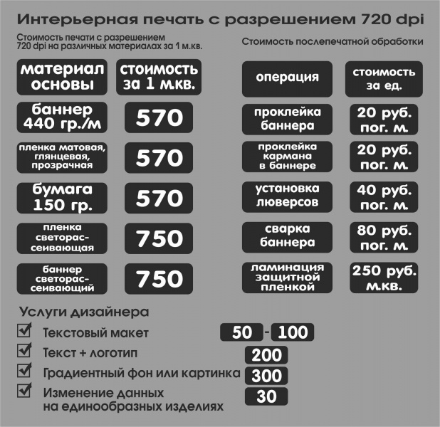 - Широкоформатная полноцветная печать