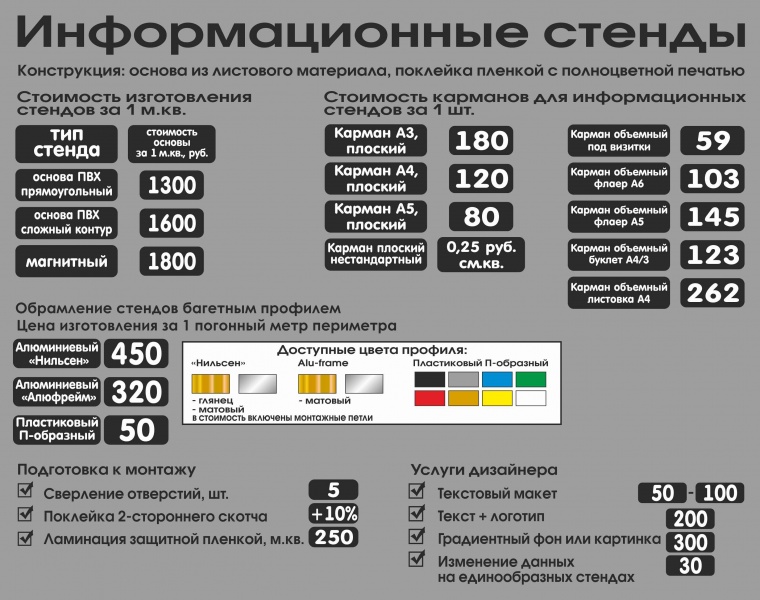 Компания "Пониграфика" предлагает изготовление информационных стендов любых типов и размеров.